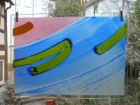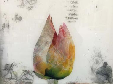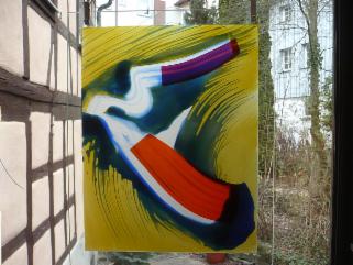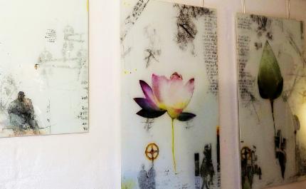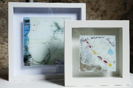 Marlies Achermanns Augen nehmen ihre Umgebung aufmerksam wahr und halten sie fotografisch fest. Diese Fotografien dienen der Künstlerin als Anregung und Ausgang für Ihre experimentelle «Hinter-glasmalerei». Dabei werden nur Bruchteile von Fotografien verwendet Nach einer Nitrofrottage trägt die Künstlerin Acrylfarbe auf und ritzt sowie klebt verschiedene Materialien hinter den Glas auf. Die stete Ver