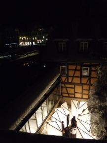 12 Lichtkörper – Leuchträume – von maximal machbarer Größe, um sie durch die Pforte in den Hof zu bringen, bilden wiederum Lichträume, durch die hindurchgegangen werden kann. Sie bilden einen 12 –strahligen Stern nach außen. Gleichzeitig 12 Strahlen nach innen. Zugängliche und unzugängliche Räume entstehen. Ein Einziger dieser Lichtkörper macht schon schön hell. Und wenn alle so nebeneinander stehen, bekommen die elf Anderen von dem Einen etwas mit , sie werden beleuchtet, vielleicht durchleuchtet oder sogar erleuchtet . Aber dann, wenn alle Zwölf leuchten, dann kommt erst das „Strahlen“ auf, das Zusammenstrahlen . Das könnte bildhalft auf uns Alle übertragen werden. Kaum ein Begriff wie „Licht“ – ist so vielschichtig und wird so oft bildhaft verwendet: Wir sollten beispielsweise „unser Licht nicht unter den Scheffel stellen“, oder, wenn ich sage „ mir geht ein Licht auf“, dann habe ich vielleicht urplötzlich eine wichtige Erkenntnis, und sehe dann vielleicht alles in einem „neuen Licht“. Und, um im Bild zu bleiben, die zwölf Lichtkörper könnten auch zwölf lichterfüllte Monate im Neuen Jahr darstellen...